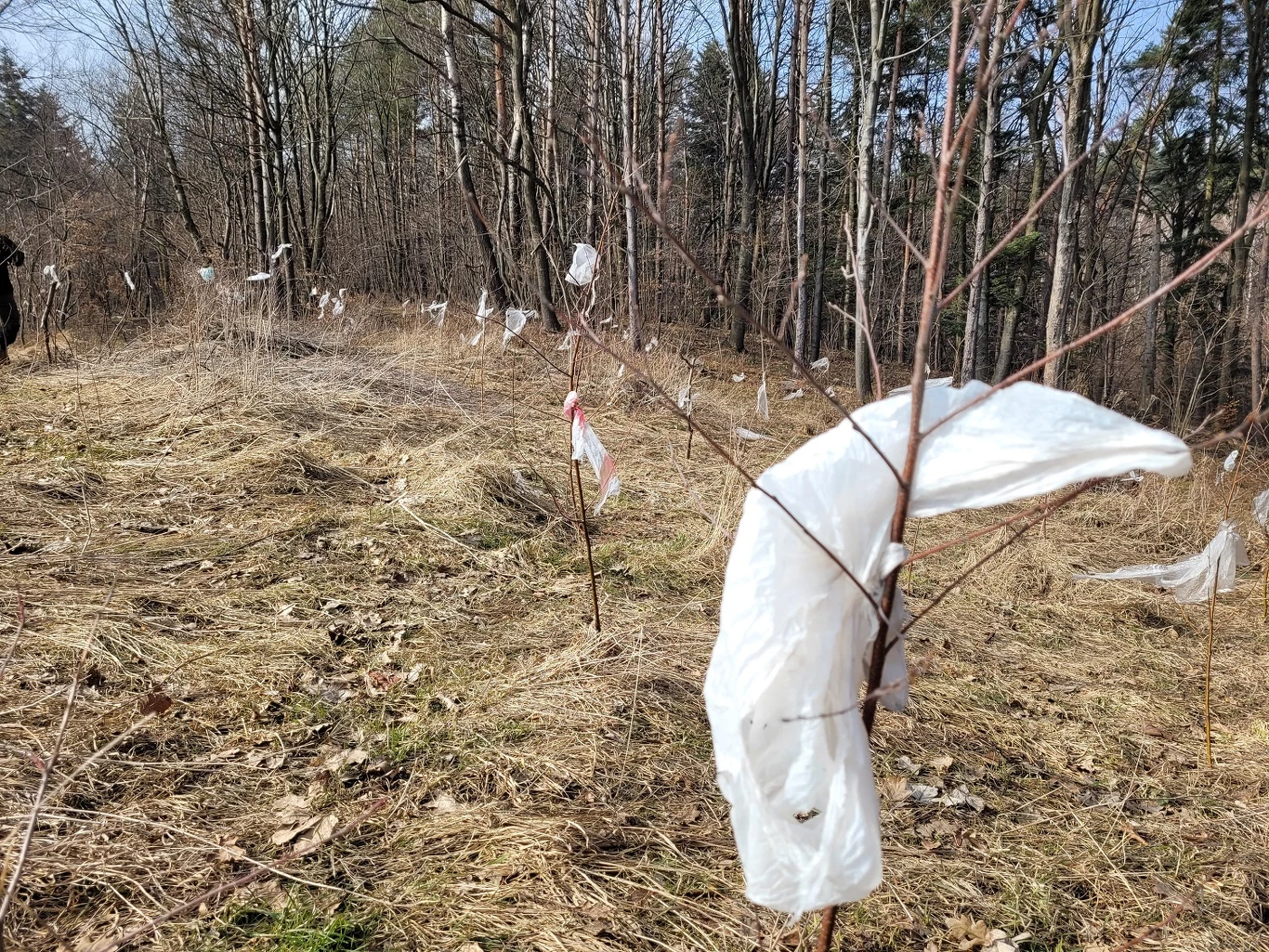 Część lasów w Beskidzie Niskim należy do osób prywatnych. W porównaniu do reszty Polski, gdzie zdecydowana większość terenów zalesionych to własność państwa, jest ich tam więcej. Zdaniem Dobrowolskiego widać to nie tylko po gorszych gatunkach drzew, jakie są tam sadzone, ale i zabezpieczeniu odrostów przed zwierzyną. - Ku mojemu zdumieniu zobaczyłem, że wszystkie są obklejane...woreczkami foliowymi. To niebywałe. Ma to powstrzymać sarny, jelenie i zające przed obgryzaniem. Zwierzęta sobie z tym radzą bez problemu, a foliówki latają, jak ptaki po lesie - opowiada ekolog.