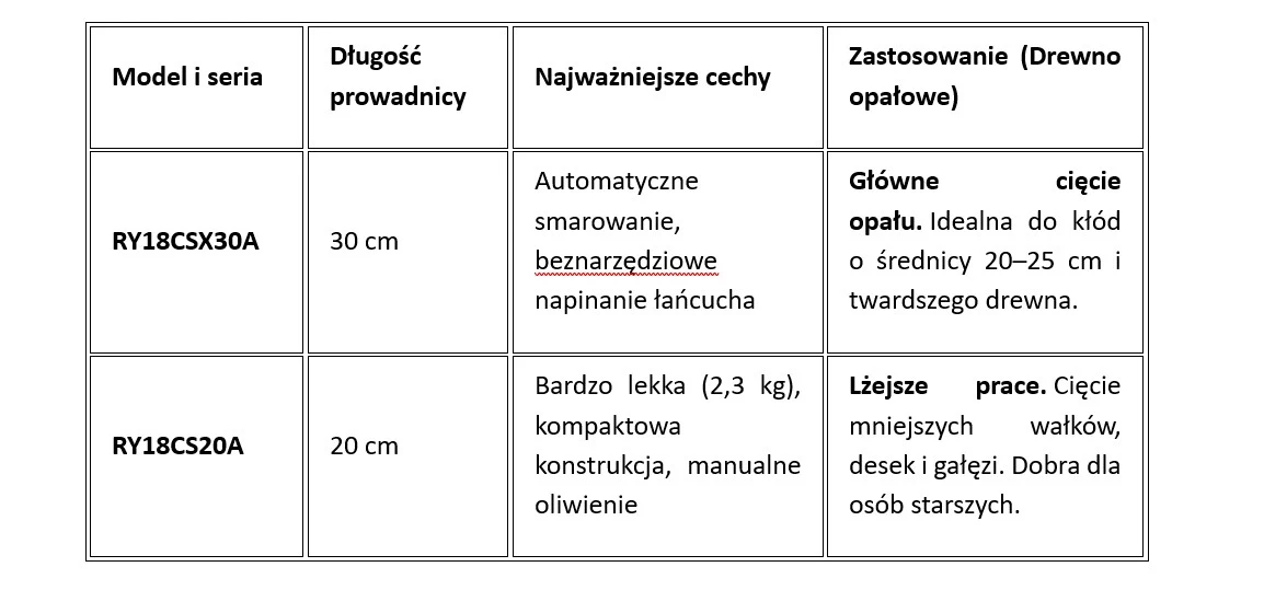Jeśli szukasz sprzętu, który sprawdzi się w ogrodzie i przy przygotowaniu opału, warto zwrócić uwagę na ofertę marki RYOBI. Oto trzy modele o różnym przeznaczeniu: