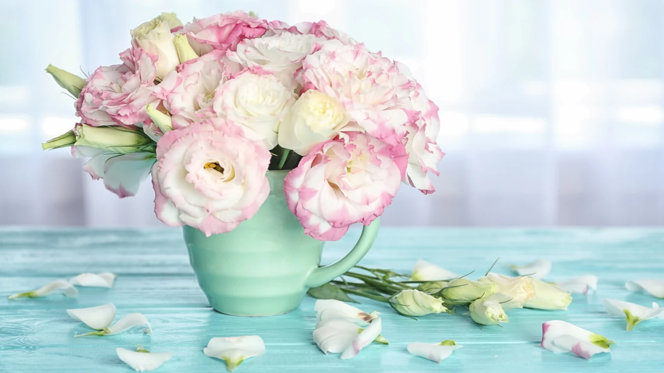 Eustoma (lizianthus) doskonale łączy delikatność z trwałością. Jej dzwonkowate kwiaty występują w pastelowych odcieniach, takich jak róż, biel czy fiolet, a także w bardziej intensywnych barwach. W odpowiednich warunkach eustoma może zdobić wnętrze przez około dwa tygodnie. Idealnie nadaje się do bukietów ślubnych oraz romantycznych kompozycji.