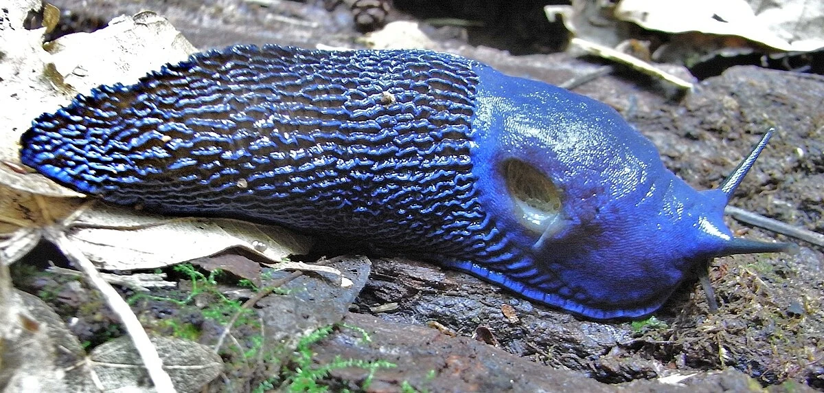 Pomrowy są chyba najbardziej elektryzującą ludzi zwierzęcą nazwą tego lata. To niewątpliwy najnowszy "krzyk mody", bowiem w tym roku te nagie ślimaki dały się ludziom mocno we znaki. Zjadały uprawy i te przemysłowe, rolnicze, ale i wiele przydomowych jarzyn, kwiatów, ziół. A to boli szczególnie. Wydają się niezniszczalne, a chroni je śluz i barwy upodabniające do otoczenia. I na to wszystko wpełza taki oto ślimak o intensywnie niebieskim kolorze.