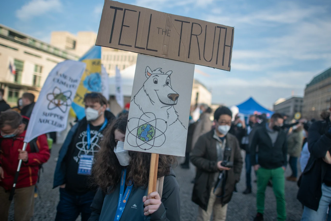 Protest przed Bramą Brandenburską w Berlinie zorganizowali obrońcy klimatu m.in. z polskiej fundacji FOTA4Climate, propagujący pragmatyczną ekologię, przy współpracy z niemieckimi organizacjami: Nuclearia, Mothers for Nuclear, oraz StandUp For Nuclear.