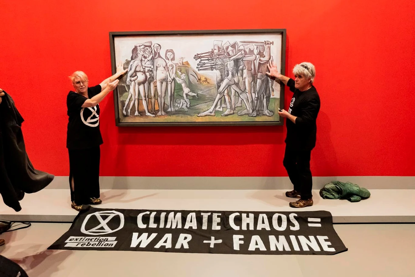 Namalowany w 1951 r. obraz "Masakra w Korei" zdaniem aktywistów obrazuje "horror wojny". "Załamanie klimatu będzie oznaczać więcej konfliktów na całym świecie. Musimy wszyscy, wliczając w to instytucje, działać już teraz" - poinformował na swoim Facebooku lokalny oddział Extinction Rebellion.