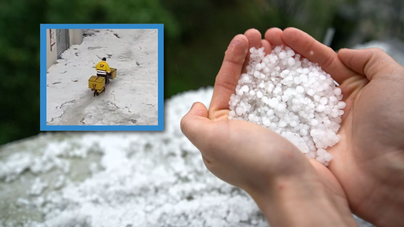 Niesprzyjająca aura nie powstrzymała jednak pewnego ambitnego listonosza Deutsche Post przed wykonywaniem swoich obowiązków. Mimo zalegającego na ulicach gradu, mężczyzna nadal rozwoził przesyłki, brodząc w wodzie swoim służbowym rowerem.
