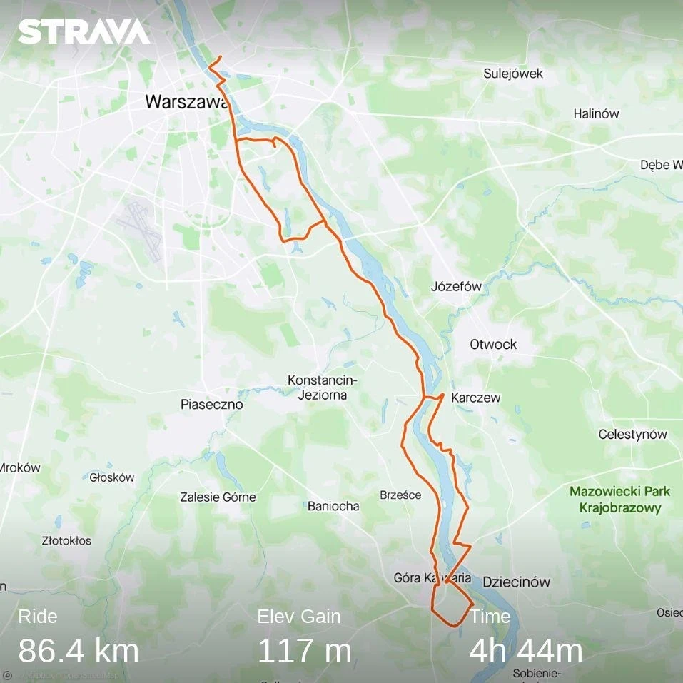 Możemy także odpocząć po prawej stronie Wisły. Znajduje się tam wiele terenów zielonych wzdłuż żwirowo-szutrowej trasy, z dala od miejskiego zgiełku.Góra Kalwaria (ok. 80 km)Na wyprawę do Góry Kalwarii i znajdującego się nieopodal Czerska należy przeznaczyć zdecydowanie więcej czasu. Zależnie od naszego tempa, trasa może zająć ok. 5-6 godzin.
