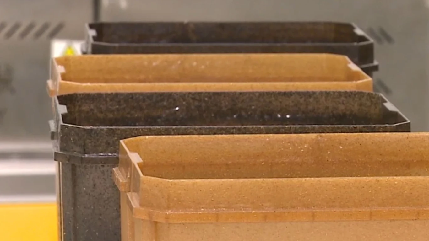 - Czas rozkładu pojemników można kontrolować podczas produkcji, a materiał nadaje się do tworzenia różnych przedmiotów, takich jak kuwety czy listwy przypodłogowe.