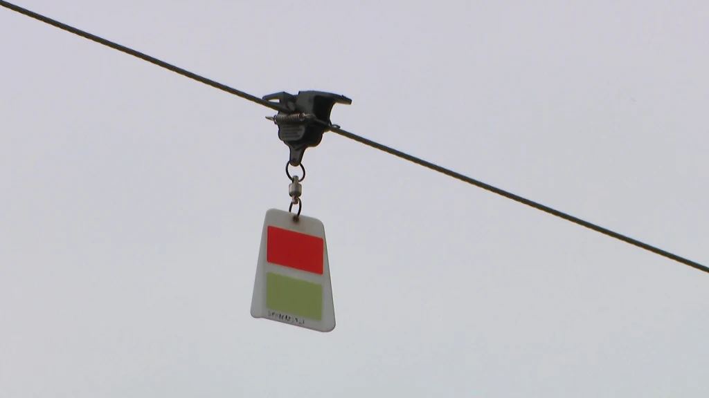 Na linii energetycznej w Biebrzańskim Parku Narodowym zawisły odstraszacze dla ptaków. To małe odblaskowe znaczniki, które sprawiają, że ptaki omijają linię, a dzięki temu unikają niebezpiecznych kolizji. Przewody wiszące nad ziemią to główne zagrożenie dla migrujących ptaków w terenie niezabudowanym. W miastach najniebezpieczniejsze od lat pozostają wszelkie szklane powierzchnie. Przemysław Sławiński.