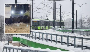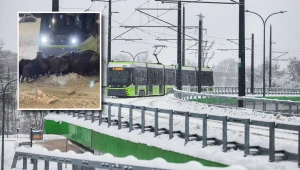 Dziki zatrzymały tramwaje w Olsztynie. Miały dobry powód