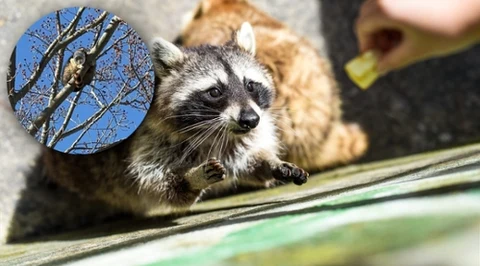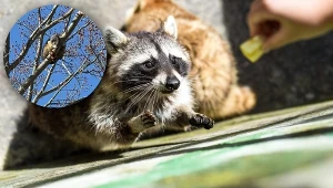 Zgubiło go łakomstwo. Szop utknął na drzewie ze słoikiem na głowie