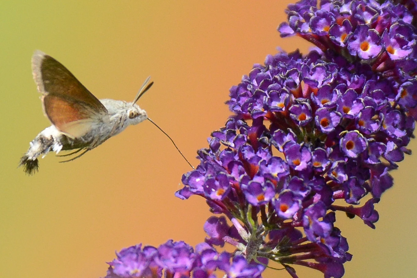 To, co widzisz na pewno niezwykły motyl - fruczak gołąbek. Porusza się podobnie jak koliber, a nawet ma taką samą dietę, dlatego łatwo o pomyłkę.