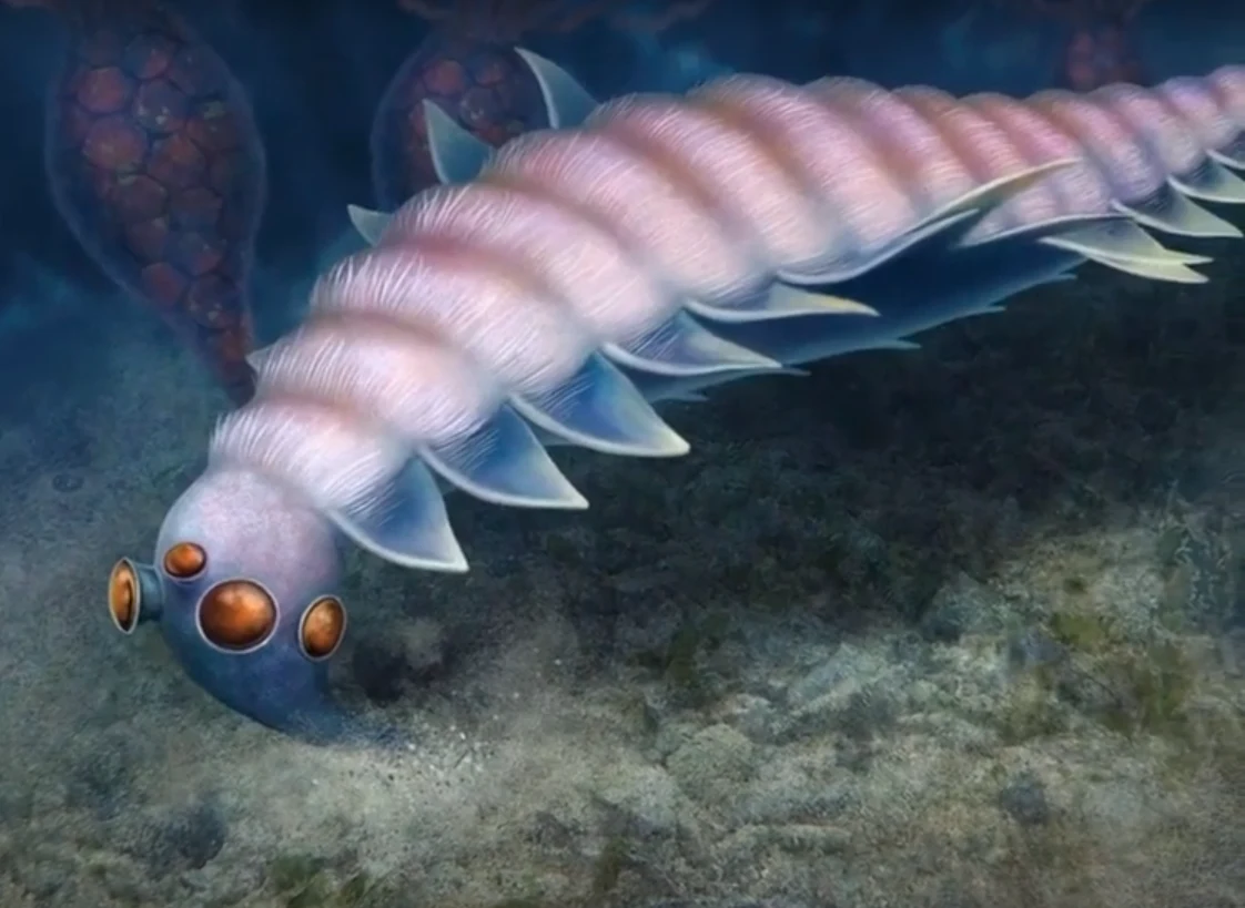 Wygląda jak potwór z koszmaru. Ma ostre pazury wystające z paszczy, troje bystrych oczu i elastyczne, podzielone na segmenty ciało, które badacze opisują jako "przypominające kształtem szczotkę klozetową". Był zapewne doskonałym pływakiem, poruszającym się dzięki rzędowi specjalnych klapek rozmieszczonych wzdłuż ciała. Miał też długie, przypominające grabie kolce, dzięki którym mógł wygrzebywać ofiary spod piasku.