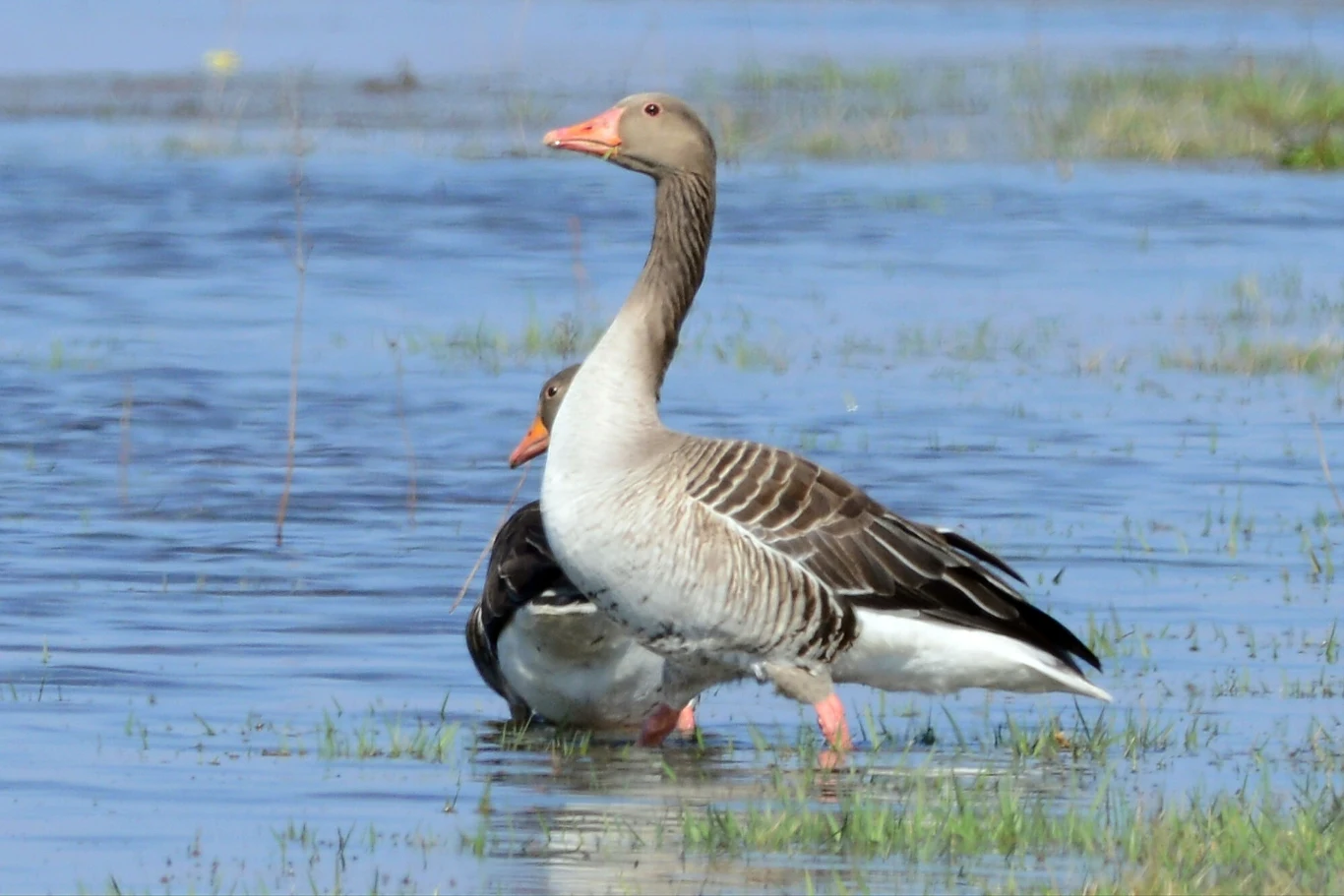 Gęś zbożowa i gęś białoczelna na krótko zatrzymują się nad polskimi rzekami, dlatego ich obecność jest szczególnym momentem. Równocześnie gęś białoczelna decyduje o spektakularności przelotu ptaków. Gęś białoczelna gnieździ się w Eurazji i na Grenlandii, a zimuje na morskich wybrzeżach. Jak odróżnić gęś gęgawę od innych gęsi? Ma charakterystyczną plamę na czole i czarne pręgi na ciele (widoczne podczas lotu).