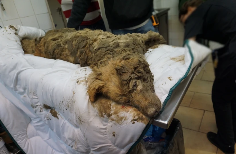 KTOZ informuje, że pies miał ogromne ilości ziemi w pysku, oczach, nosie oraz uszach. Weterynarz stwierdził również ropomacicze i skrajne wychudzenie, co wskazuje na długotrwałe zaniedbanie.