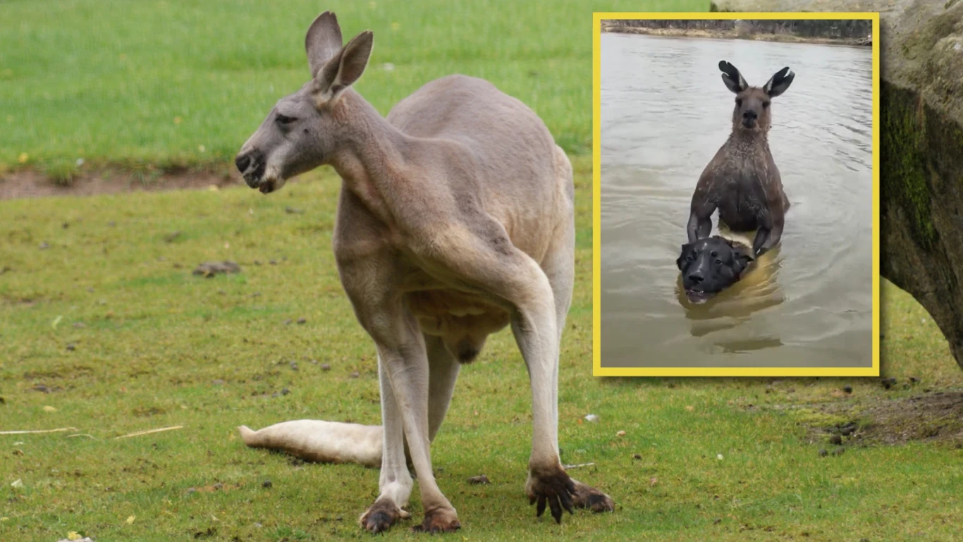 Dziwne zachowanie kangura. Złapał psa, a potem stał jak wryty