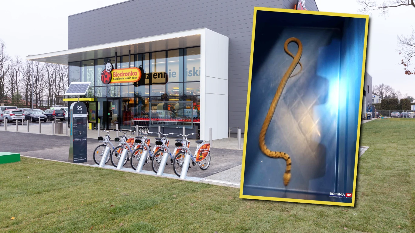 O gadzie pisze m.in. lokalny portal informacyjny Bochnia 112. W piątkowe południe do straży pożarnej wpłynęło zgłoszenie o wężu, którego widziano w sklepie Biedronka w miejscowości Łapanów.