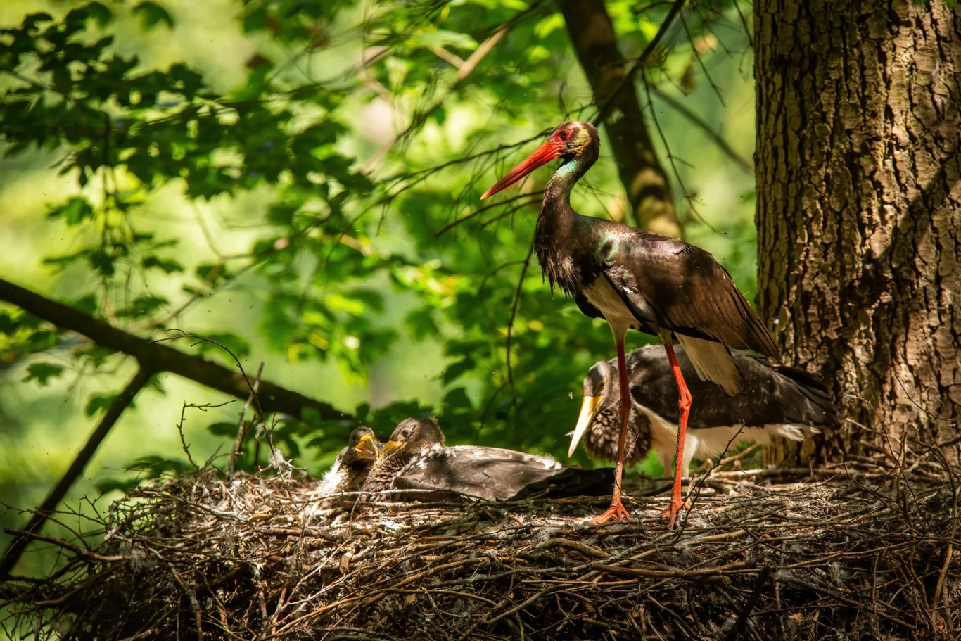 I to nie tylko ptaków szponiastych, ale i bocianów czarnych. To rzadki i bezcenny gatunek, który jest dobrym krewnym bociana białego. Znacznie mniej licznym, bo, o ile liczba par bocianów białych w Polsce sięga 50 tys., o tyle czarnych jest nieco ponad 1 tys.