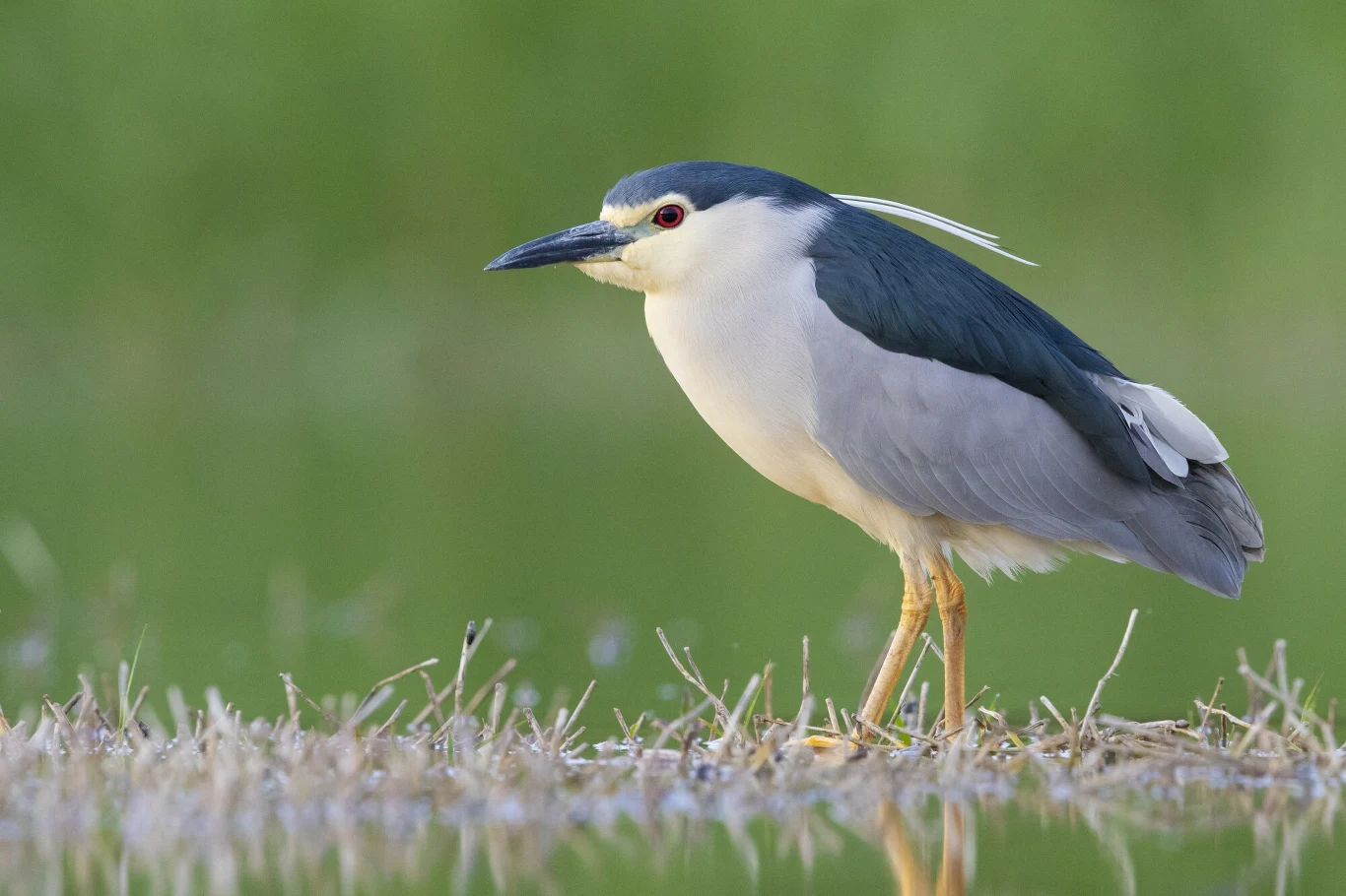 Sylwetkę tej czapli uzupełnia czerwona tęczówka. W okresie godowym z głowy samca wyrastają ponadto dwa długie białe pióra ozdobne.