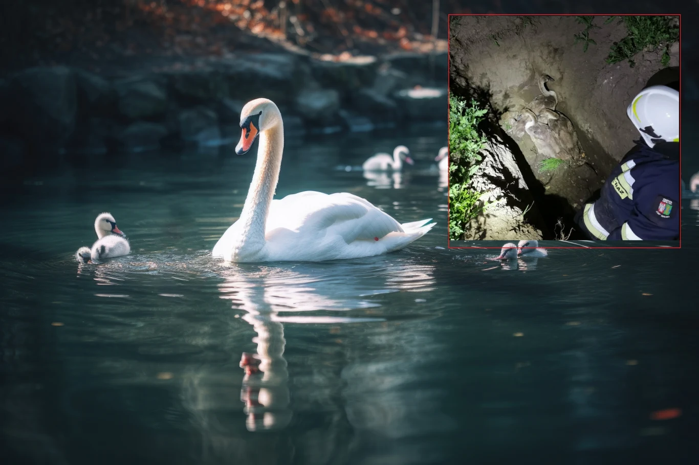 W woj. kujawsko-pomorskim Strażacy Ochotniczej Straży Pożarnej z Salna koło Grudziądza zostali wezwani do trzech młodych łabędzi, które utknęły w głębokim rowie przyrożnym. Funkcjonariuszom udało się uratować zwierzęta.