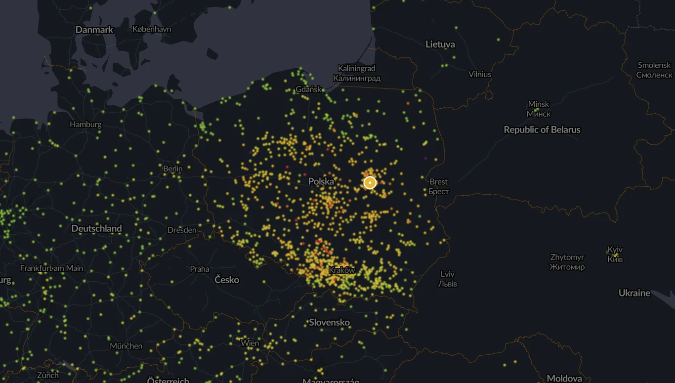 Inne czerwone punkty na smogowej mapie Polski w czwartkowy poranek to m.in. Trzemeszno (woj. wielkopolskie), Zadzim (woj. łódzkie), Rogowo (woj. kujawsko-pomorskie), Wieruszów (woj. łódzkie) czy Dobrodzień (woj. opolskie).