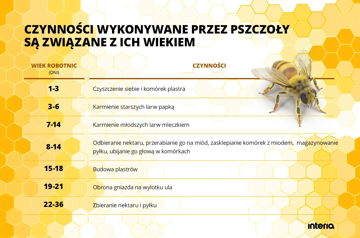 - Praca jest zorganizowana według ich wieku. Zaczynają od obowiązków w ulu, a kończą na lataniu po pożytek.