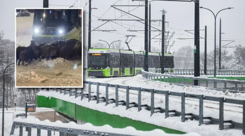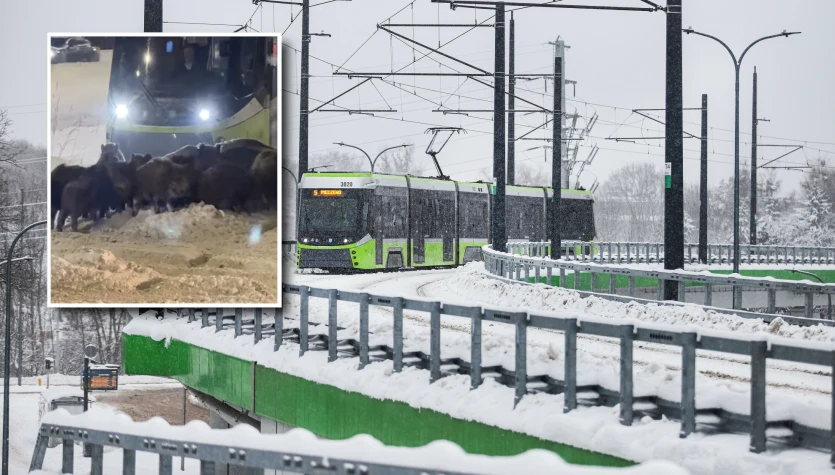 Dziki zatrzymały tramwaje w Olsztynie. Miały dobry powód