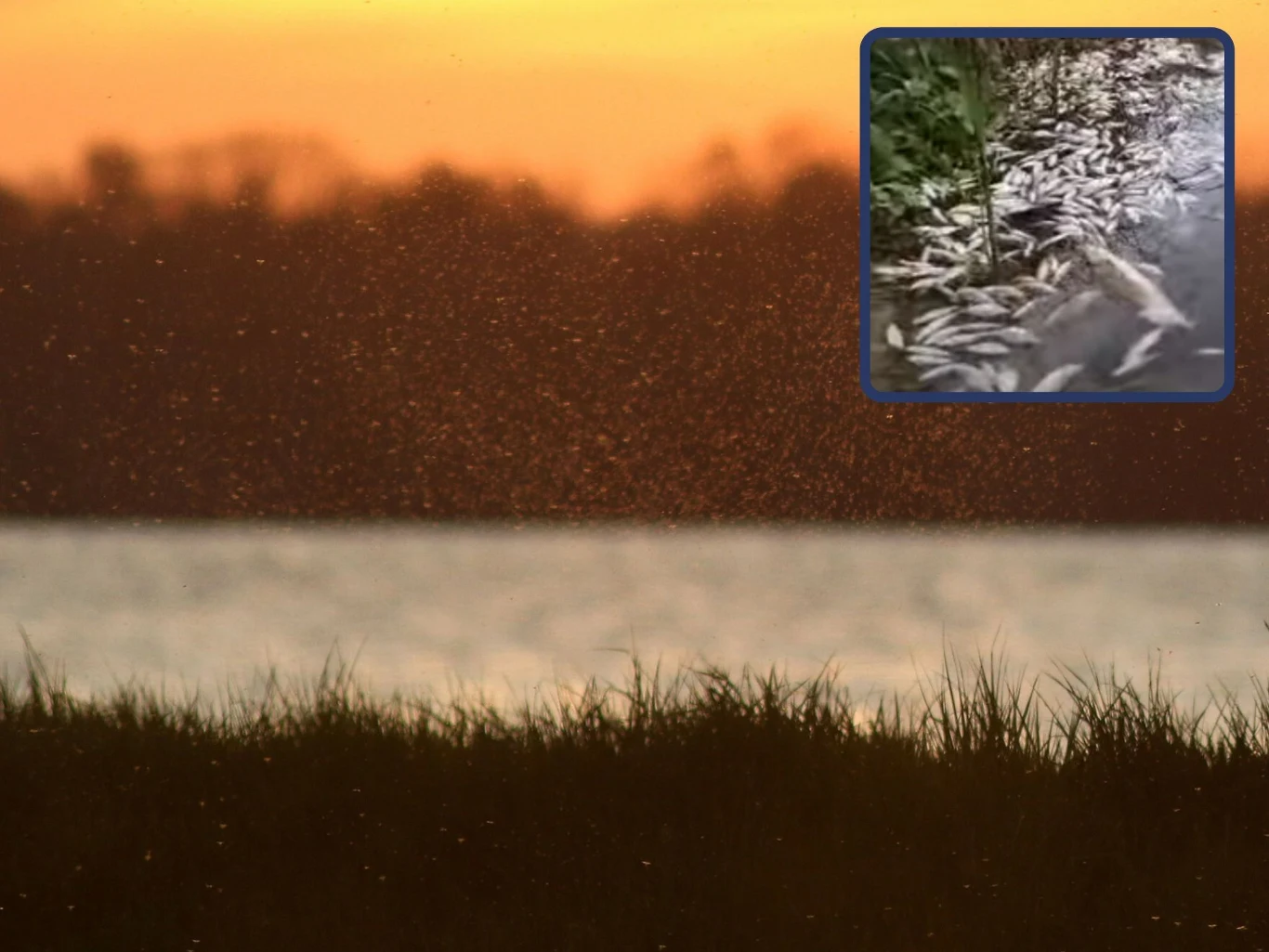 Na nagraniu udostępnionym przez lokalny portal widać setki, a nawet tysiące ryb unoszących się na powierzchni lub znajdujących się przy brzegu.