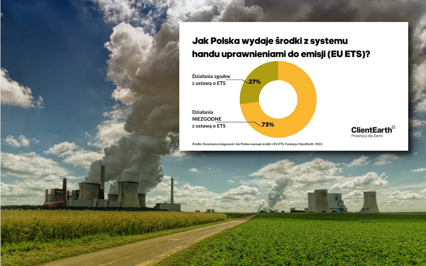 Analiza Fundacji ClientEarth wykazała, że Polska nie spełnia wymogu przeznaczenia co najmniej 50 proc. równowartości dochodów z tytułu sprzedaży uprawnień do emisji CO2 na cele klimatyczne i środowiskowe. W konsekwencji narusza dyrektywę ETS oraz nie wykorzystuje szansy na przyspieszenie dekarbonizacji krajowej gospodarki.