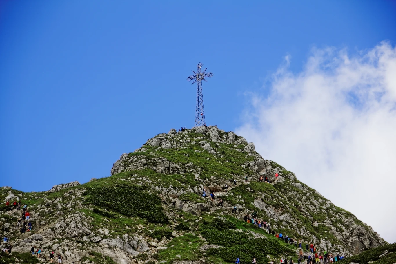 Pomimo zagrożenia burzą, wspiął się na krzyż na Giewoncie. Byli też tam inni ludzie