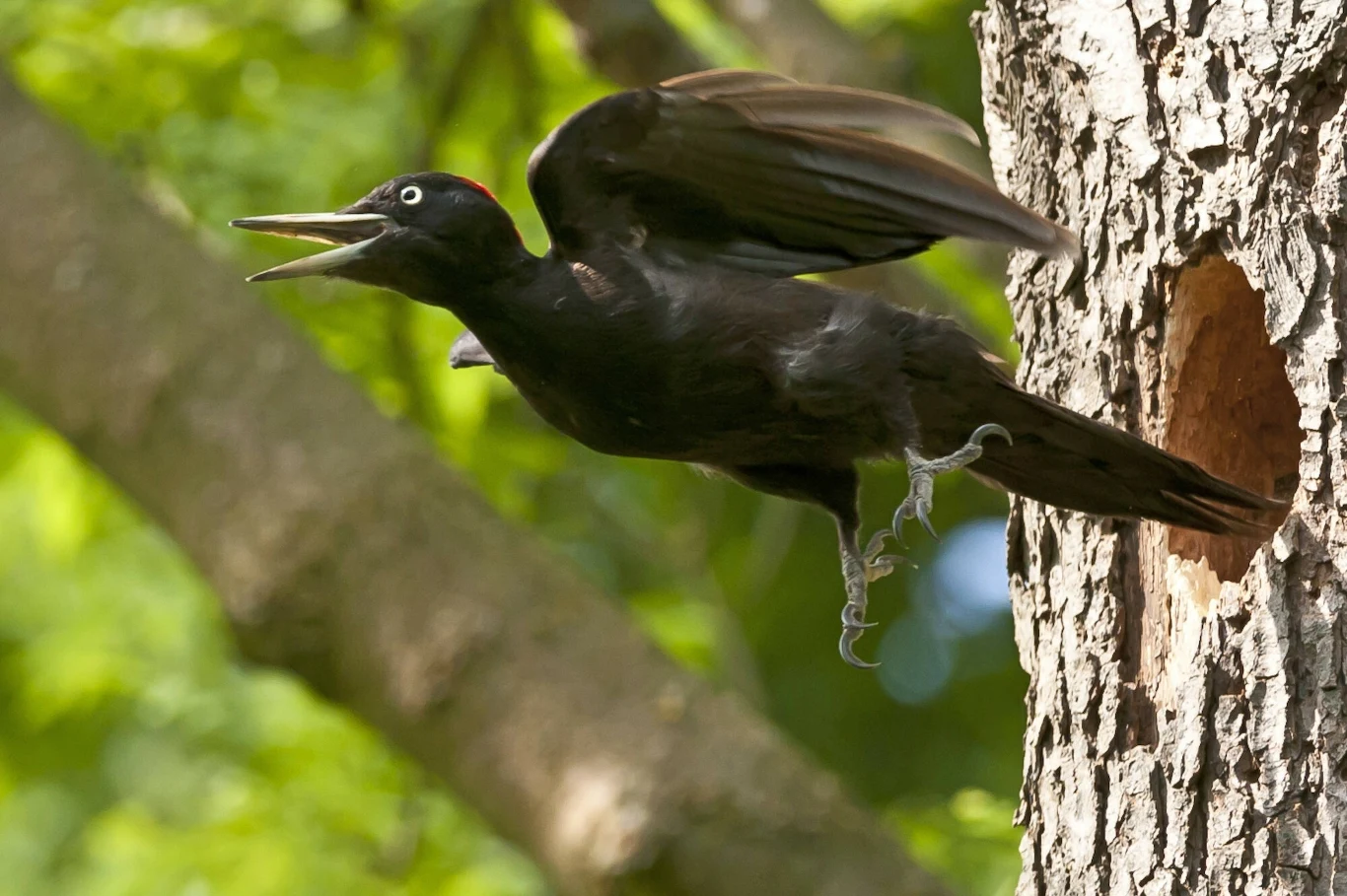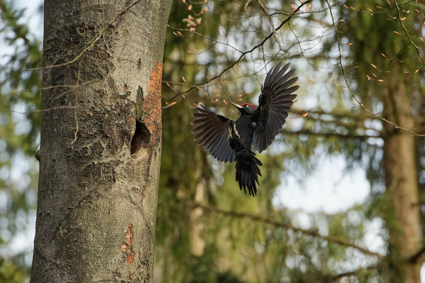Gdy się go usłyszy, warto cierpliwie czekać i wytężać wzrok. Jest całkiem prawdopodobne, że dzięcioł czarny się ujawni, przeleci z drzewa na drzewo, by spróbować krzyczeć z innej strony areału. Wtedy zobaczymy jednego z najpiękniejszych polskich ptaków.