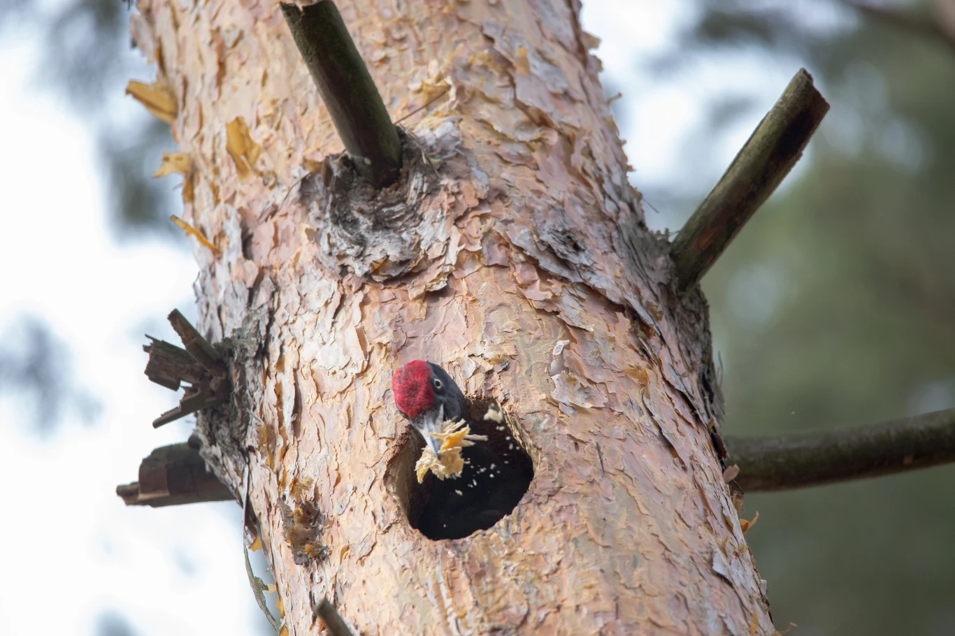 Jeżeli ktoś akurat spaceruje, nie sposób go nie usłyszeć. Gdy wtedy znieruchomiejemy i poczekamy, możliwe, że zobaczymy sporego ptaka przelatującego z drzewa na drzewo. To właśnie dzięcioł czarny.