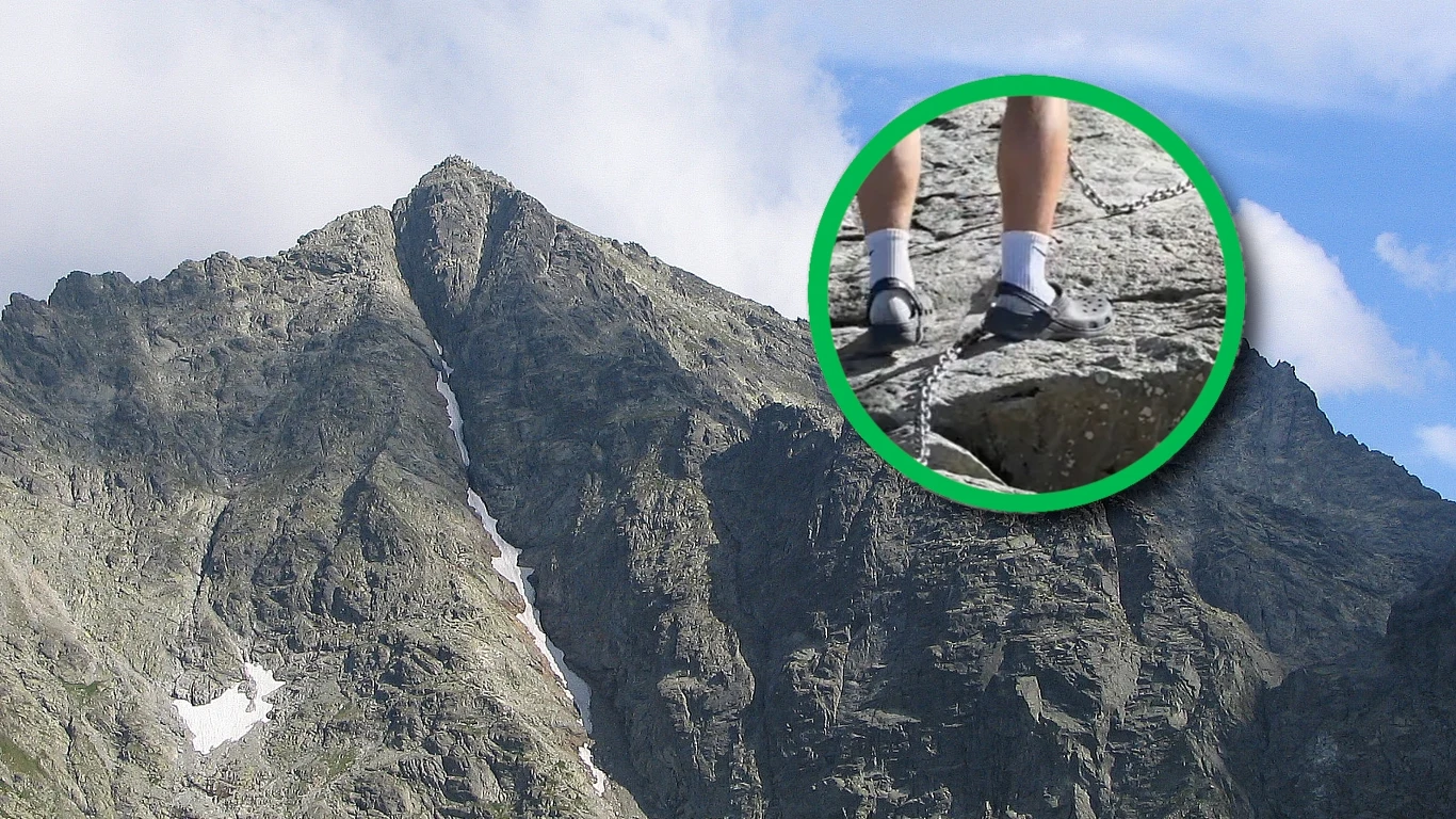 Na nagraniu widać jak pewien mężczyzna wchodzi na Rysy, mając na nogach wyłącznie skarpety i gumowe klapki w stylu Crocs. "Szlak na Rysy i odpowiednie obuwie" - napisała ironicznie TikTokerka. Góra jest najwyższym szczytem Polski, a wierzchołek po stronie naszego kraju ma niemal 2500 m wysokości.