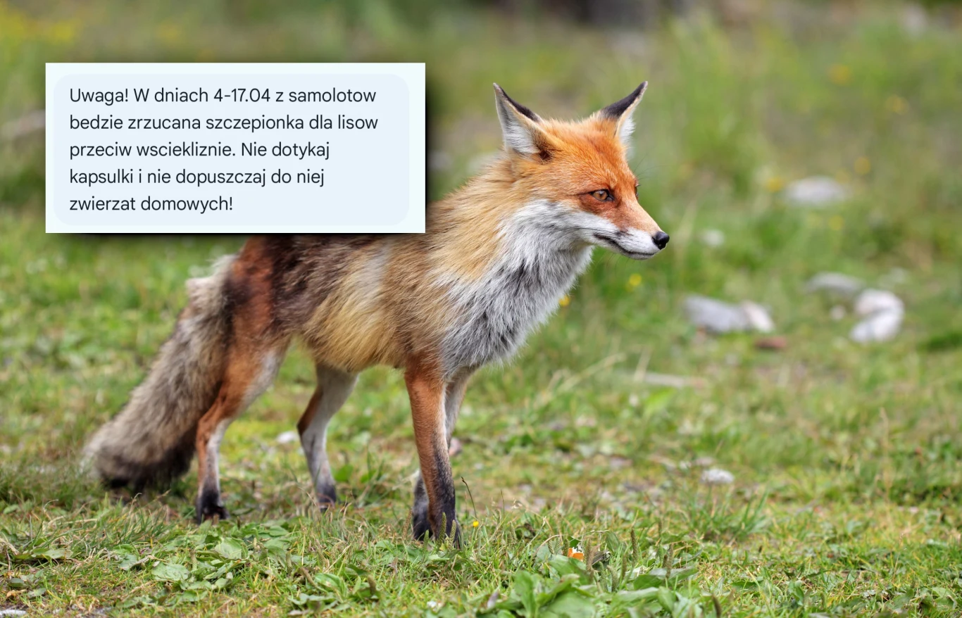 W środę osoby znajdujące się w woj. podlaskim, lubelskim, mazowieckim i części województwa kujawsko-pomorskiego mogły dostać specjalną wiadomość. "Uwaga! W dniach 4-17.04 z samolotów będzie zrzucana szczepionka dla lisów przeciw wściekliźnie" - czytamy w SMS-ie.