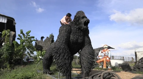 Artysta z Kambodży zbudował King Konga ze starych opon