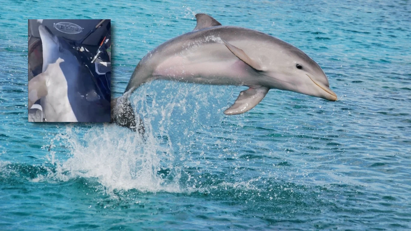 Dean Harrison wypłynął łodzią, aby łowić ryby. Mężczyźni relacjonują, że delfiny pływały tuż obok, ale nikt nie spodziewał się, że huk, który nagle usłyszeli, zwiastował "spadającego z nieba" delfina.