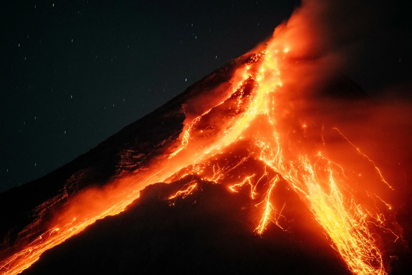 Wulkan rozpędził się jednak. Badający erupcję wulkanologowie odnotowali 256 osunięć skał z tej góry, o czym poinformował Filipiński Instytut Wulkanologii i Sejsmologii. Wulkan wygenerował również 41 piroklastycznych strumieni, a emisja dwutlenku siarki osiągnęła poziom 777 ton metrycznych dziennie. Kłęby gorącego dymu i pary wodnej wzniosły się na 200 metrów, ale na szczęście przesuwały się na północny-wschód, w kierunku oceanu.