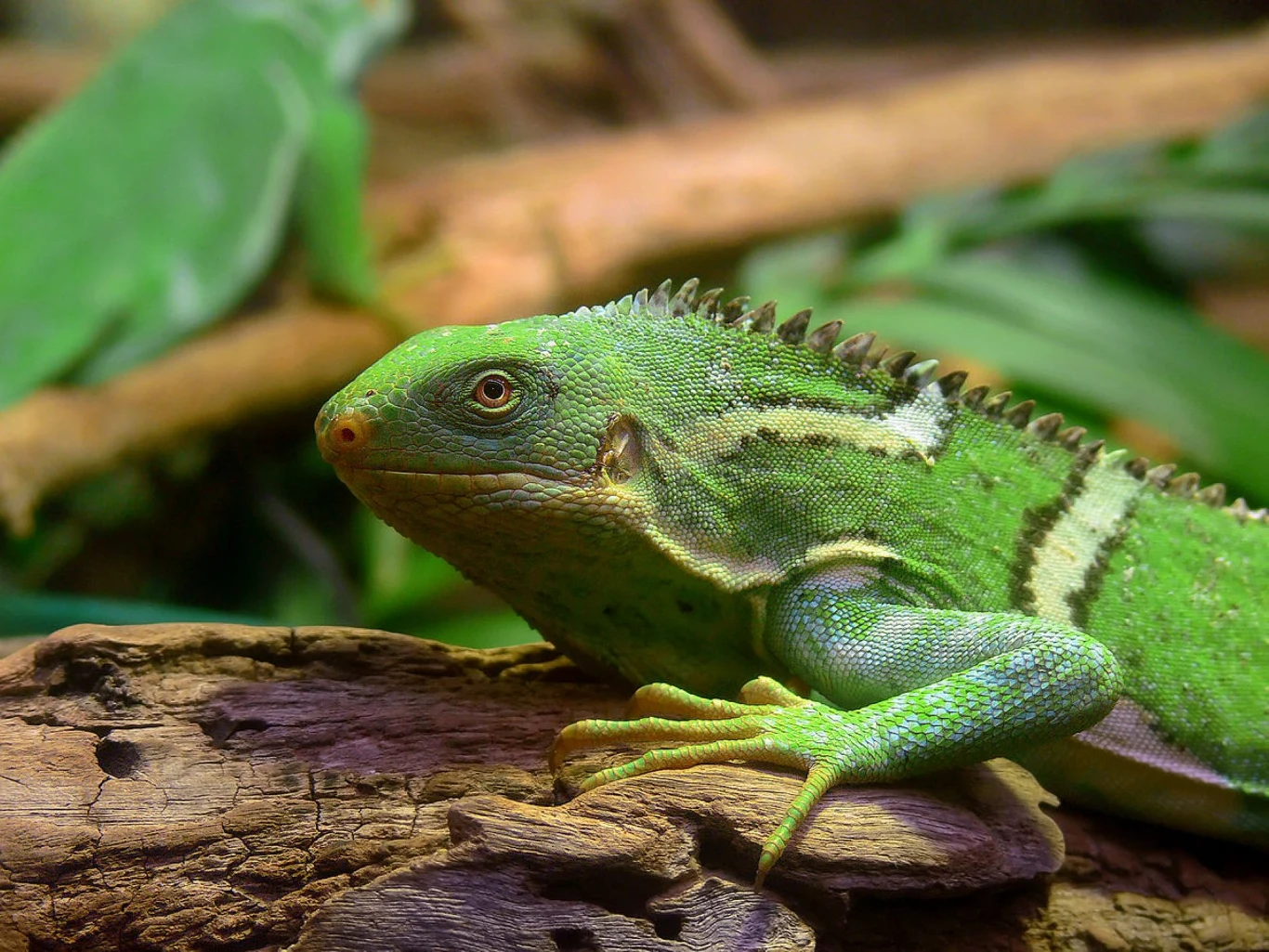 Legwan wityjski z wysp Fidżi jest jednym z najefektowniejszych i najpiękniejszych przedstawicieli tej rodziny. Cały zielony, ma jednakowoż pasy na ciele i plamy w różnych odcieniach tej zieleni. Wygląda przez to jak patchworkowe zwierzę zszyte z łatek. Jest także spory, gad ten dorasta do trzech czwartych metra i ma charakterystyczny dla legwanów grzebień na grzbiecie.