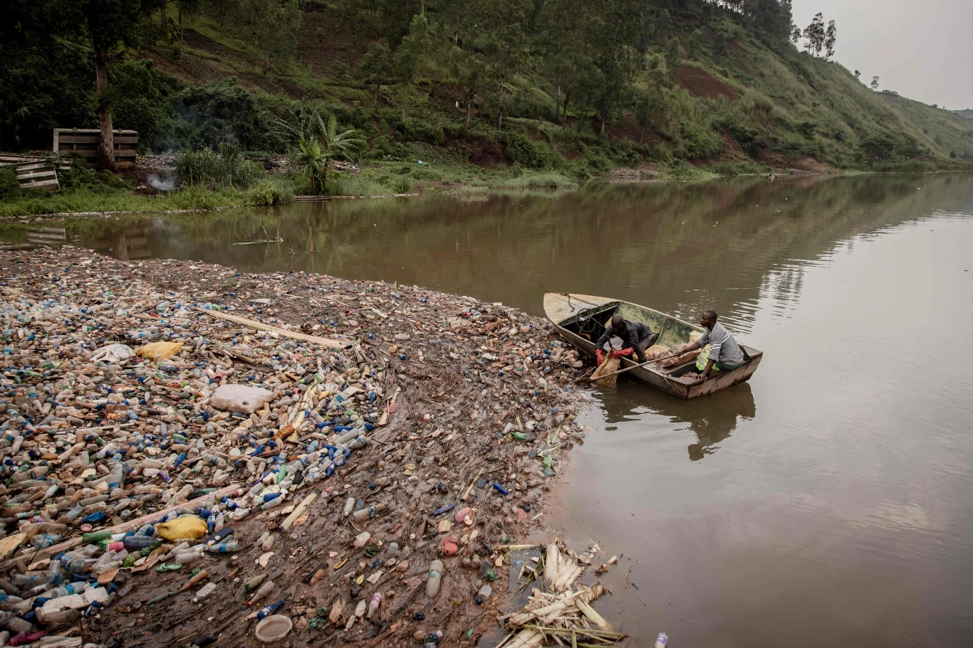 Wśród wzgórz otaczających jezioro Kiwu na wodzie unoszą się warstwy śmieci z plastiku, blokując turbiny największej hydroelektrowni we wschodniej Demokratycznej Republice Konga. Zapora Ruzizi jest zanieczyszczona przez tysiące butelek, puszek i innych odpadów wyrzucanych do jeziora, które rozciąga się na 90 kilometrów wzdłuż granicy Konga i Rwandy.