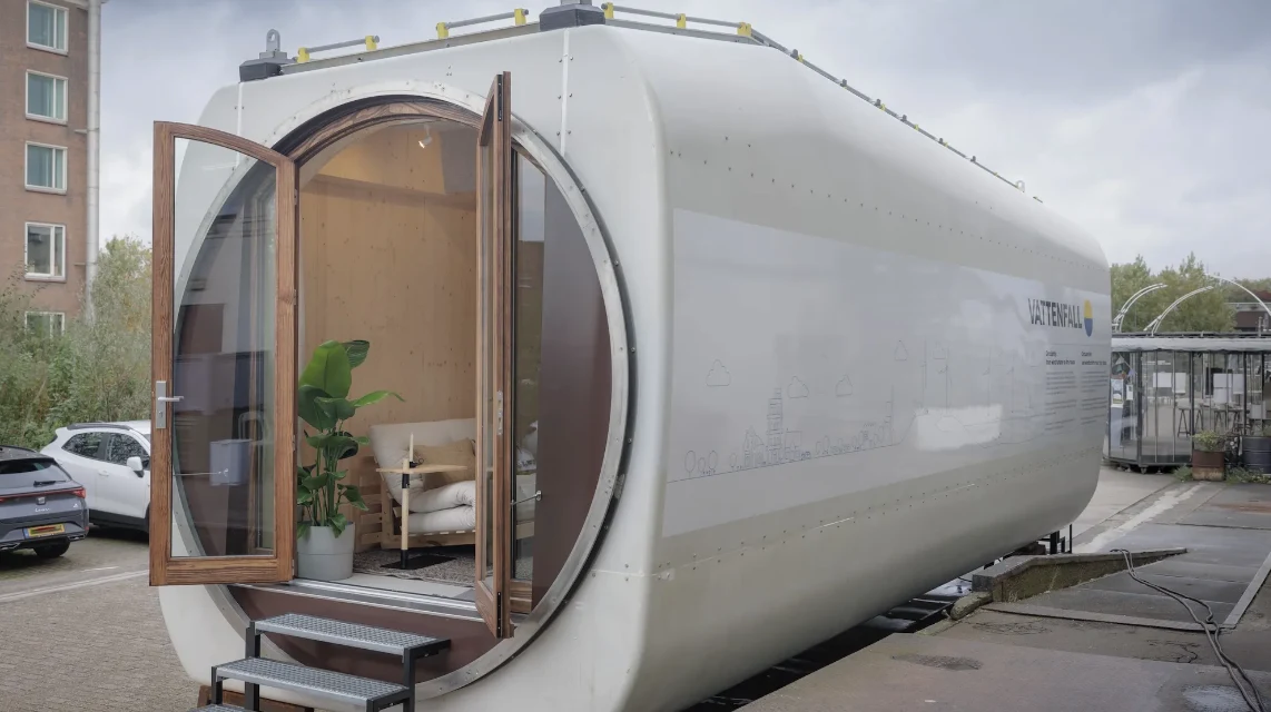 Podczas Dutch Design Week 2024, Vattenfall i studio projektowe Superuse zaprezentowały kompaktowy dom o powierzchni około 36 metrów kwadratowych, zbudowany wewnątrz wycofanej z użytku gondoli — stalowej obudowy na szczycie turbiny wiatrowej, zawierającej kluczowe komponenty mechaniczne. Ten prototypowy dom został wyposażony w salon, łazienkę i kuchnię, a także nowoczesne systemy zapewniające mu energetyczną niezależność, takie jak panele słoneczne i pompa ciepła.