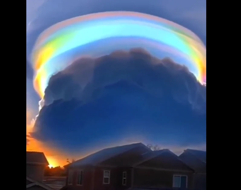 To rzadkie zjawisko atmosferyczne pojawiło się pod koniec sierpnia tuż przed zachodem słońca. Pod wpływem załamania światła na kroplach wody i kryształach lodu utworzył się tęczowy efekt zwany opalizacją. Zjawisko to spowodowane jest wielokrotnym odbiciem światła od gęsto ułożonych warstw, np. chmur. Z powodu rozproszenia światła ludzkim oczom ukazuje się tęcza.