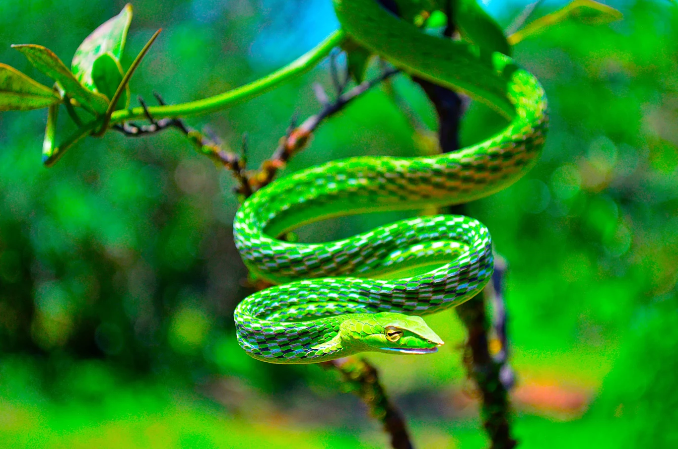 Biczowęże tak bardzo przystosowały się do życia w koronach drzew i zaroślach, że niemal zlewają się z gałęziami i łodygami. Nie tylko wspomnianą umiejętnością imitowania wyglądu i ruchów gałęzi, ale i barwami. To przepiękne węże o jaskrawo zielonych barwach. Robią wielkie wrażenie, a kolorytu dodaje im także sylwetka, która nie przypomina innych węży. Najbardziej niesamowite są chyba oczy w kolorze złotym.