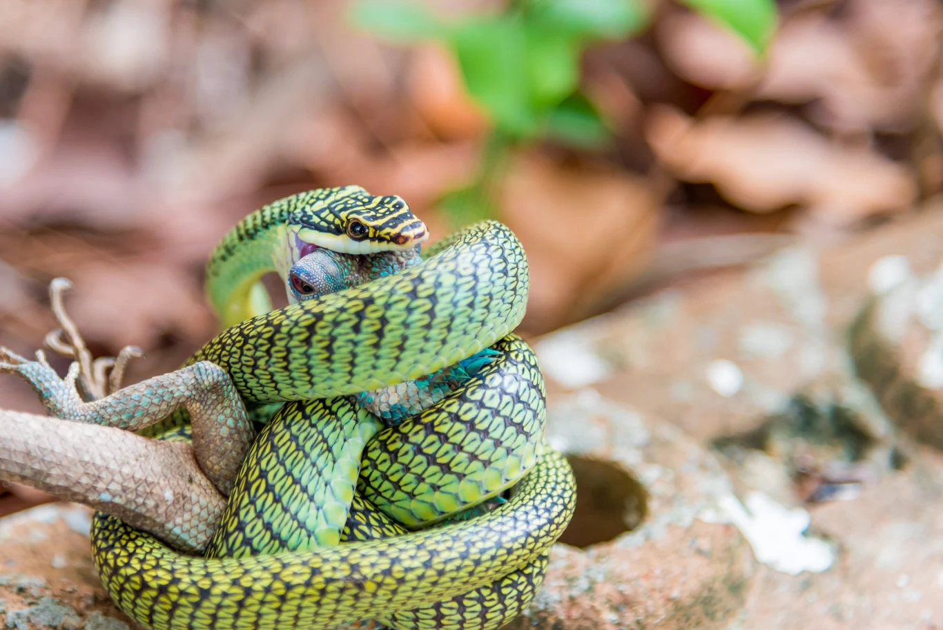 Wężoloty mieszkają w lasach południowej Azji