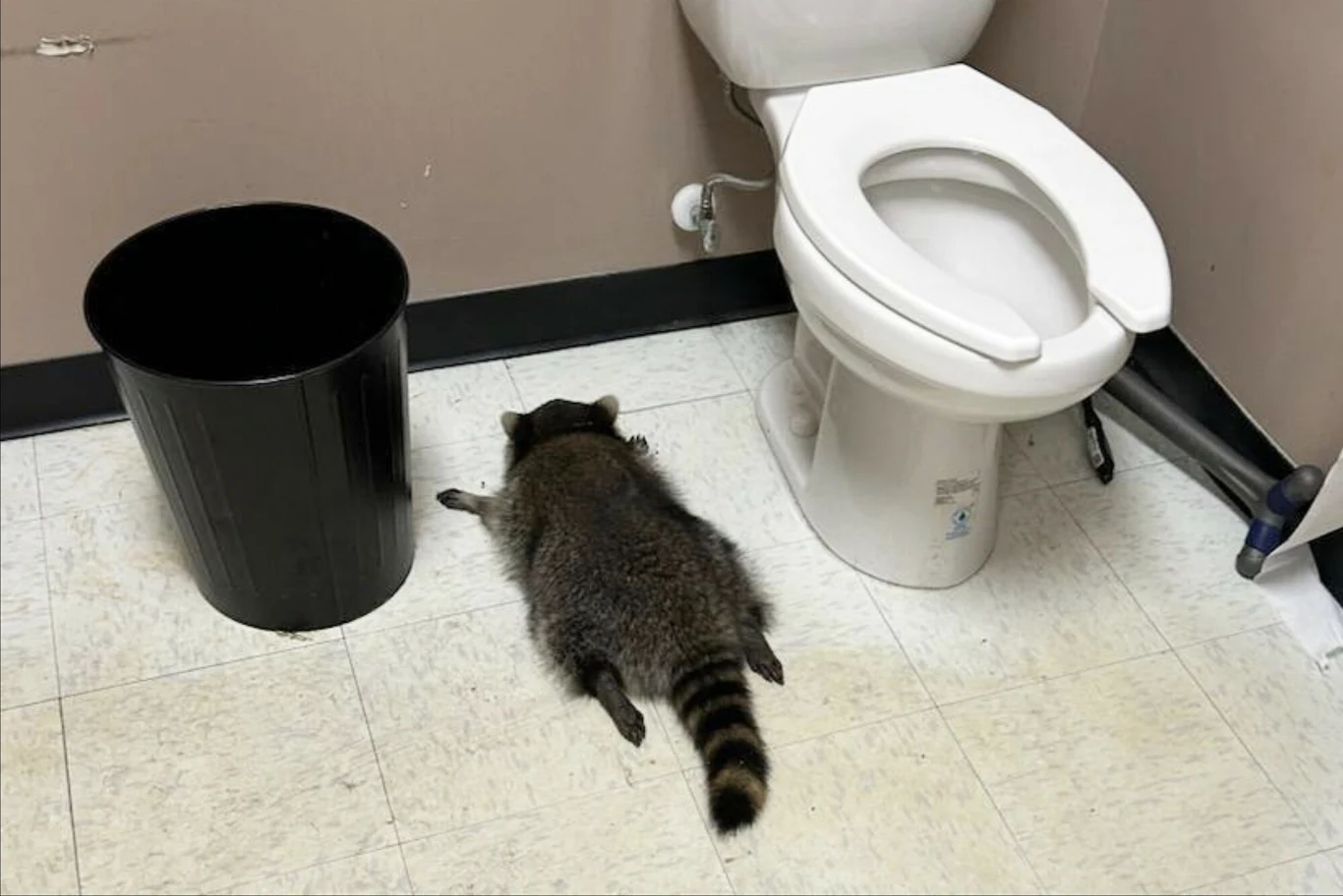 Porozbijane butelki, oblepiona likierami podłoga i nieprzytomny szop pracz leżący na podłodze obok toalety: taki widok zastali pracownicy sklepu monopolowego w Ashland. Szop pracz jakimś cudem wdarł się do zamkniętego sklepu podczas minionego weekendu.