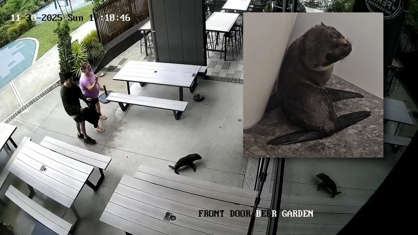 - Maleńka uchatka wbiegła do baru w Nowej Zelandii, budząc zaskoczenie gości.